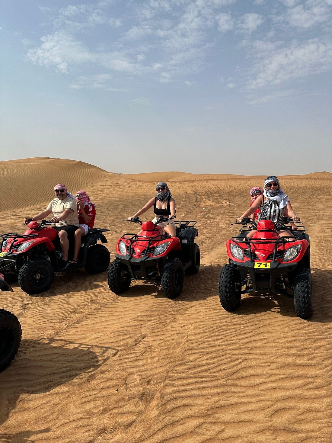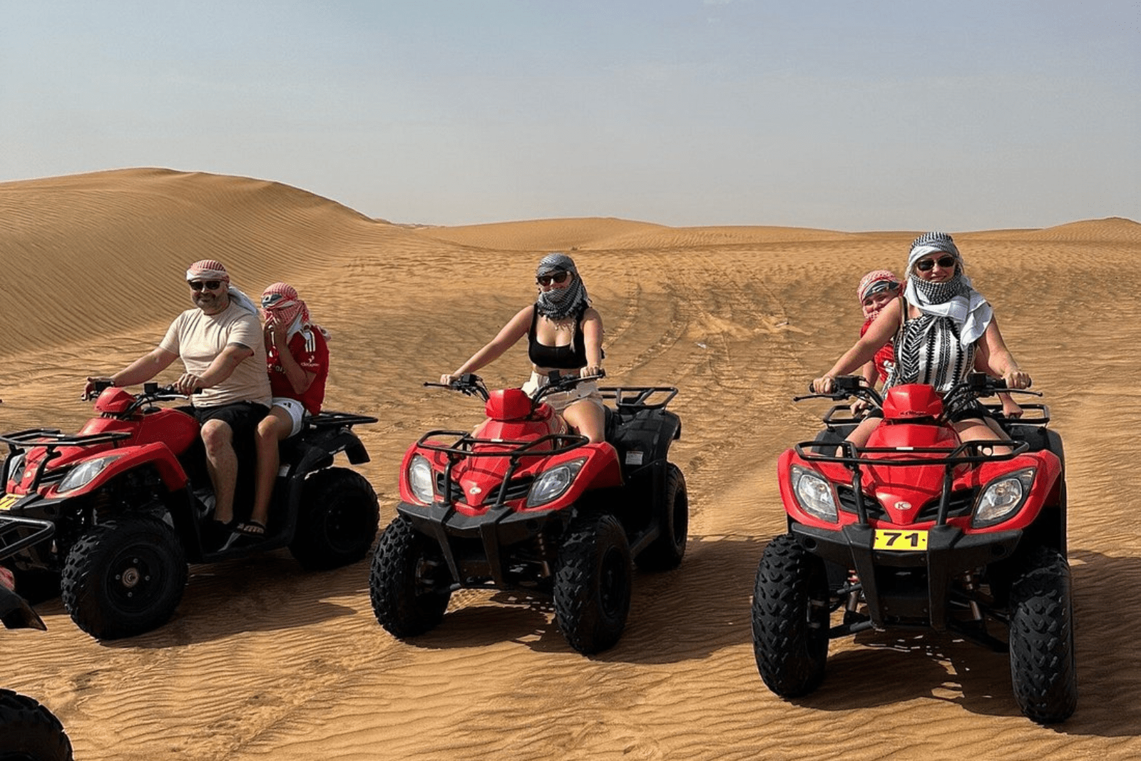 Book your Guided Desert Safari Dubai with us and enjoy an action-packed evening of adventure, dining, and entertainment. Begin your journey with a thrilling dune bashing ride in a 4×4, followed by an adrenaline-filled quad biking session across the golden sands. At the Bedouin-style desert camp, relax under the stars and experience live shows including belly dance, Tanura, and fire performances. Top it all off with a delicious BBQ dinner, camel rides, henna painting, and traditional Arabian hospitality. Reserve today for a seamless desert safari experience with us.